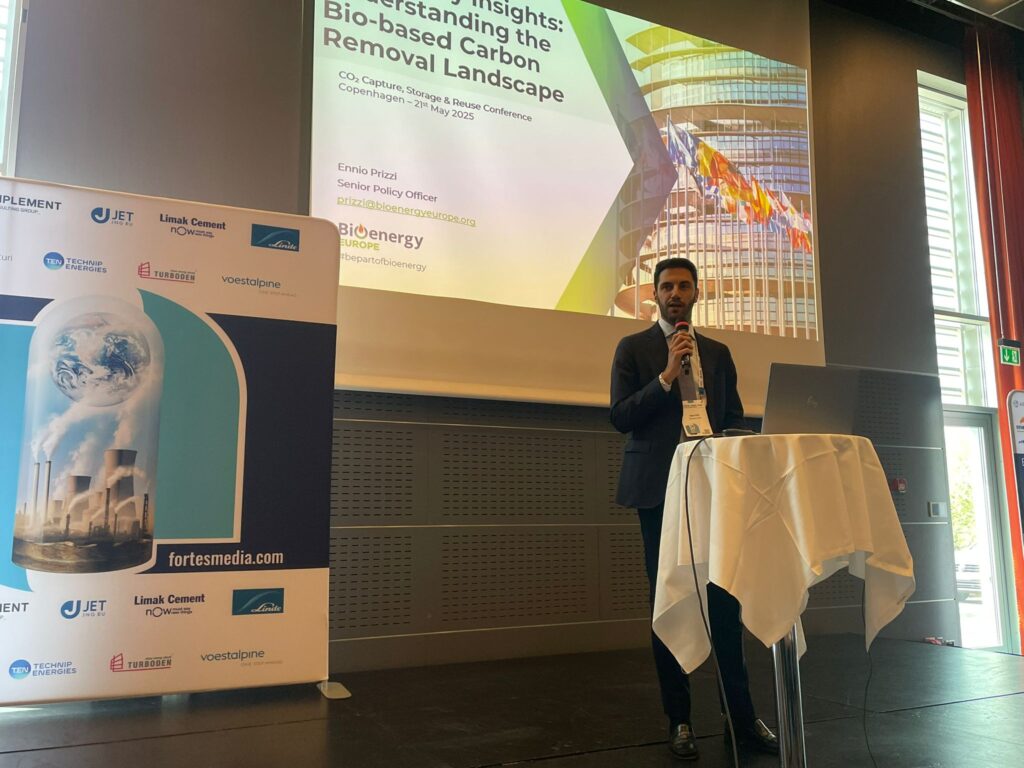 Copenhagen, May 2025 – Bioenergy Europe’s Senior Policy Officer, Ennio Prizzi, delivered a presentation at the CO2 Capture, Storage & Reuse Conference hosted by Fortes Media Group, outlining the importance of establishing a robust and credible framework for carbon removals in the EU.