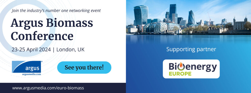 Join Bioenergy Europe at Argus Biomass Conference in London, UK on 23-25 April 2024. Do not miss the biggest international gathering of traders, wood pellet and wood chip producers, and utilities and meet with new sectors and clientele from the biofuels, heavy industry and carbon sectors.
